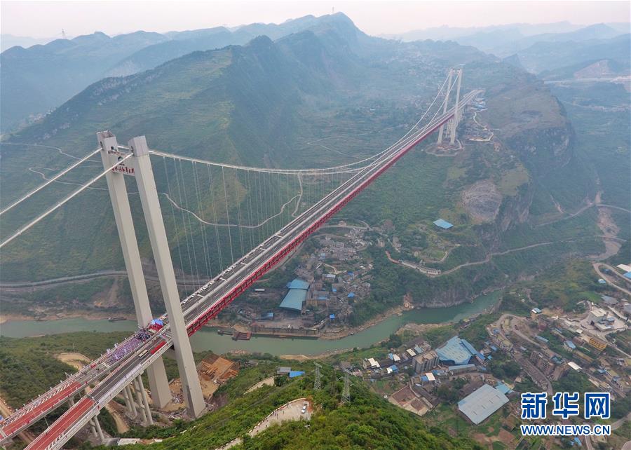 赤水河紅軍大橋全長(zhǎng)2009米,主跨1200米,主塔高243.5米,在全國(guó)山區(qū)同類型鋼桁梁懸索橋梁中排名前列,由四川省鐵投集團(tuán)投資、四川路橋集團(tuán)承建,于2017年上半年開工。 新華社記者劉坤攝