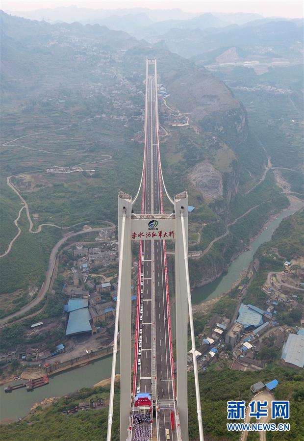 9月30日無(wú)人機(jī)拍攝的赤水河紅軍大橋。新華社記者劉坤攝