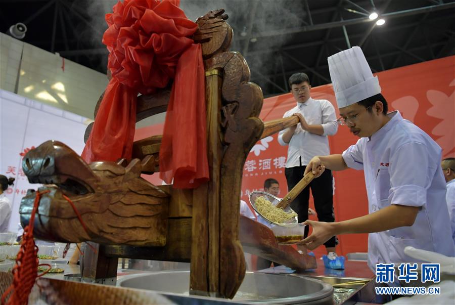 10月3日,面食師傅們在制作河撈面。新華社記者 曹陽 攝