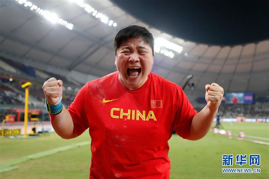 當(dāng)日,在卡塔爾多哈舉行的2019國(guó)際田聯(lián)世界田徑錦標(biāo)賽女子鉛球決賽中,衛(wèi)冕冠軍、中國(guó)選手鞏立姣以19米55的成績(jī)奪得冠軍。 新華社記者王麗莉攝