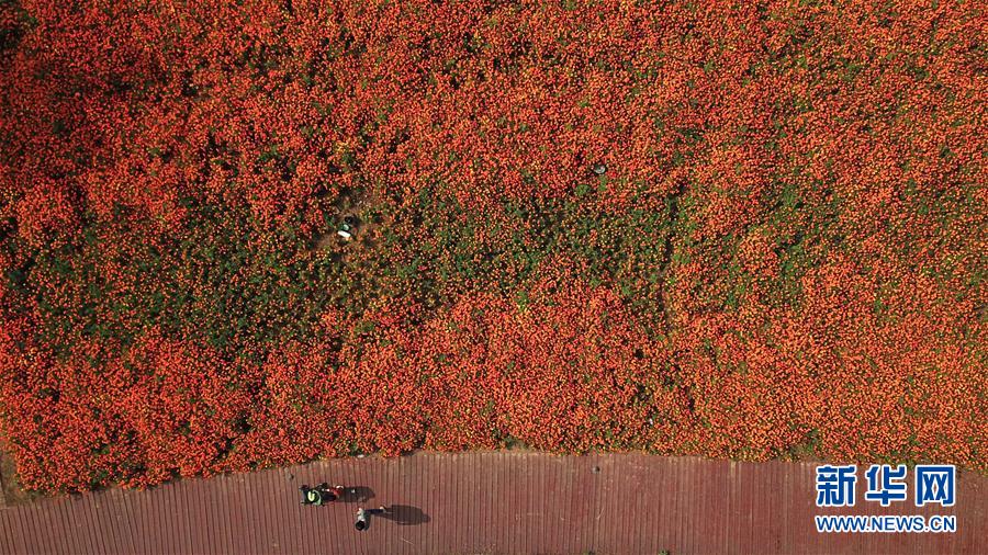 10月9日,游人在四季花海城市公園拍照。 秋日時節(jié),位于安徽省合肥市的四季花海城市公園花香四溢,色彩繽紛,成為游客和市民休閑游玩的好去處。 新華社記者 張端 攝