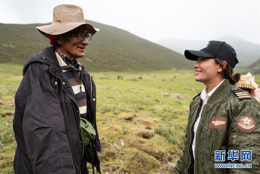 堅(jiān)熱益西與直升機(jī)(8月7日攝)。新華社記者李鑫攝