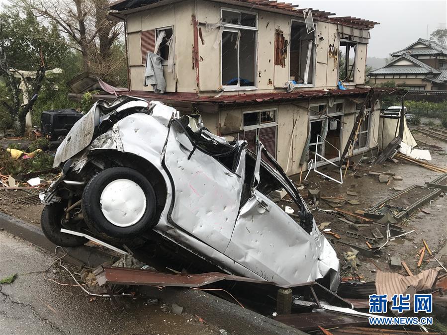 10月12日,在日本千葉縣市原市,建筑物和車輛遭龍卷風(fēng)襲擊后被損毀。新華社記者 鄧敏 攝
