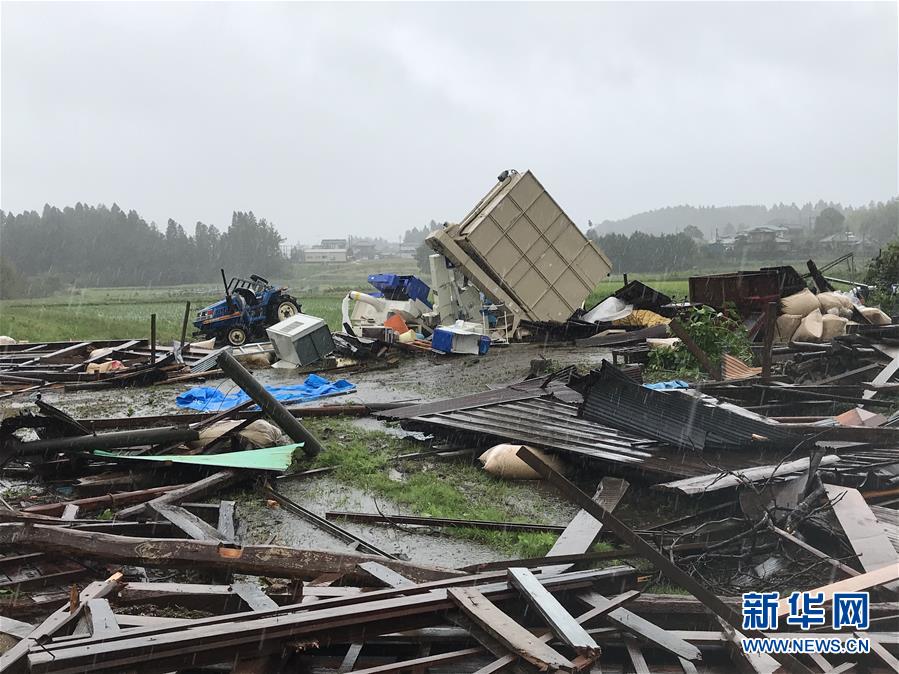 10月12日,在日本千葉縣市原市,建筑物遭龍卷風襲擊后被損毀。新華社記者 鄧敏 攝