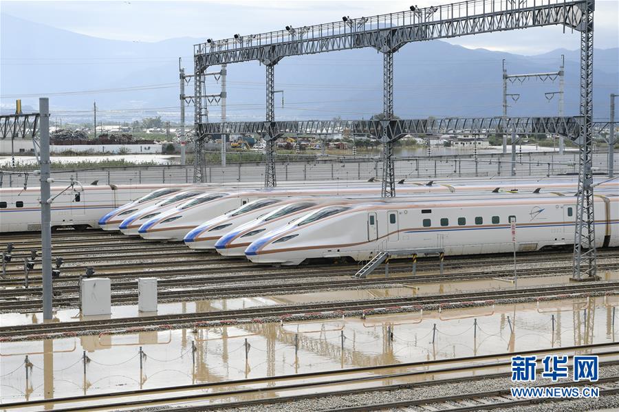 10月14日,在日本長野市,東日本鐵路公司長野新干線車輛中心的新干線列車被洪水浸泡。受縱貫東日本強(qiáng)臺(tái)風(fēng)“海貝思”帶來的強(qiáng)降雨影響,日本多地暴發(fā)洪災(zāi),已造成33人死亡、19人失蹤。據(jù)日本共同社13日統(tǒng)計(jì),“海貝思”過境導(dǎo)致日本多處河流泛濫,目前有21條河流決堤24處。其中,流經(jīng)長野縣的千曲川決堤,造成長野市和千曲市大范圍被淹,大片住宅區(qū)被洪水包圍,有的房屋甚至被淹至2層。新華社記者華義攝