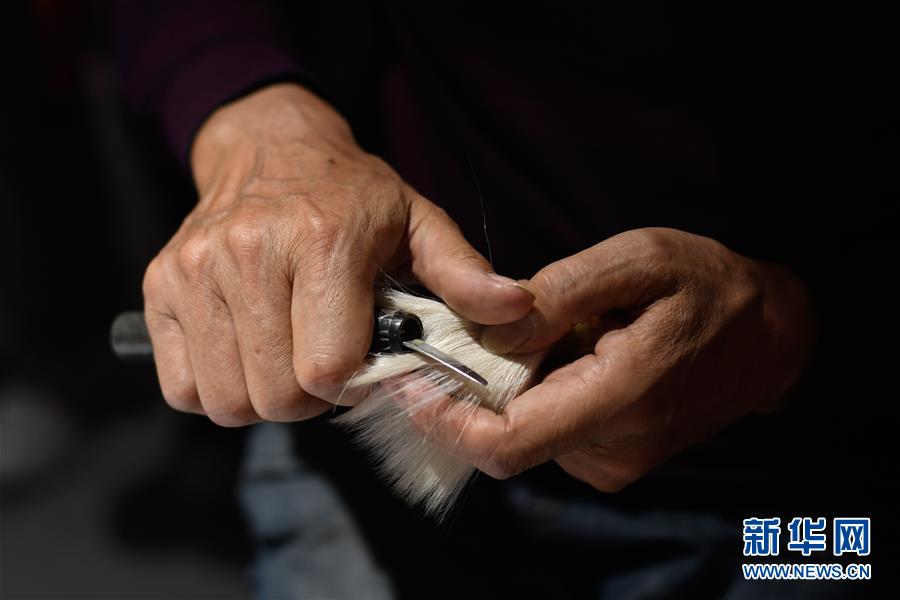 10月14日,湖筆制作技藝國(guó)家級(jí)代表性傳承人邱昌明在非遺活態(tài)傳承館展示湖筆制作的擇筆技能。新華社記者 黃宗治 攝