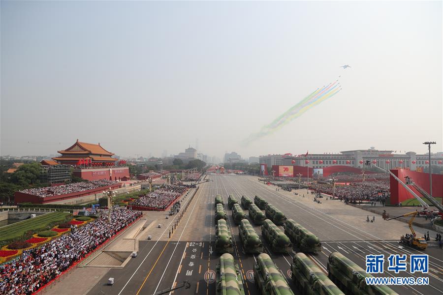 10月1日上午,慶祝中華人民共和國(guó)成立70周年大會(huì)在北京天安門廣場(chǎng)隆重舉行。這是行進(jìn)中的儀仗方隊(duì)。 新華社記者 任瓏 攝