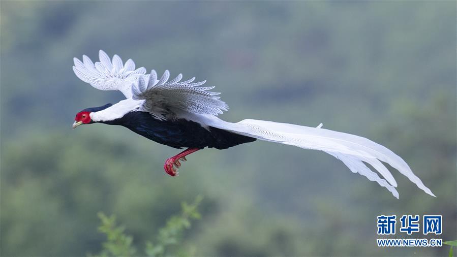 一只白鷴在福建省南靖縣鵝仙洞自然保護區(qū)展翅飛翔(10月20日攝)。新華社記者梅永存攝