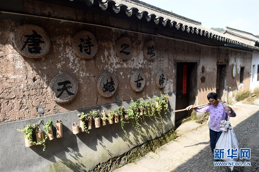 10月24日,班竹村一名老人挑貨走在村內(nèi)的道路上。新華社記者韓傳號(hào)攝