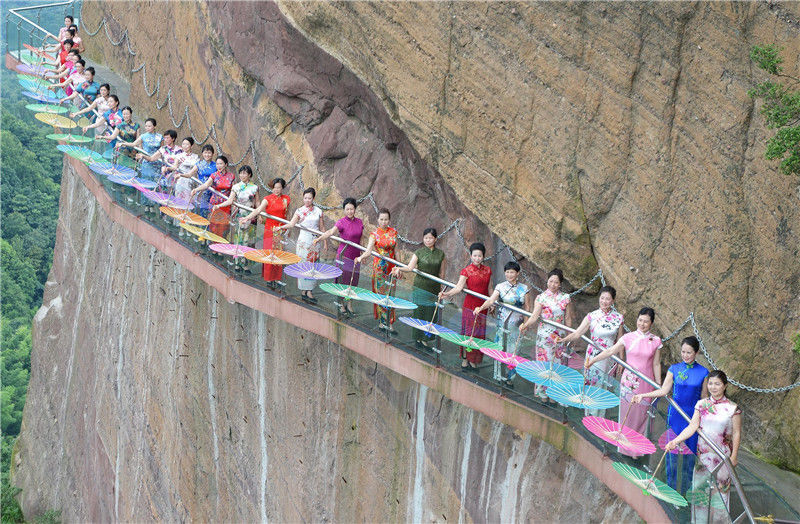 2017年7月1日,江西省弋陽國家級(jí)龜峰5A景區(qū)舉行了一場(chǎng)旗袍秀。艾世民/視覺中國