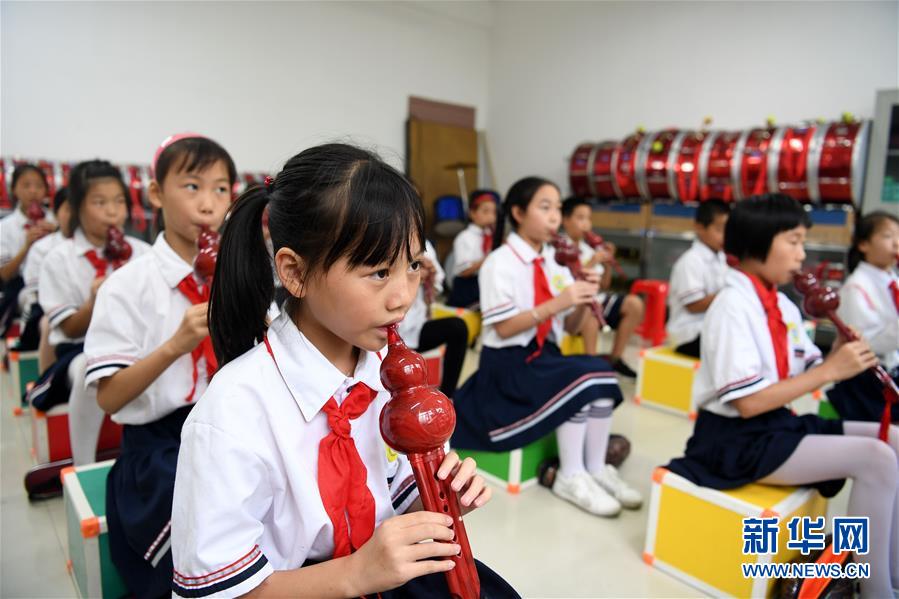 9月3日,金寨縣希望小學(xué)學(xué)生在上音樂課。新華社記者劉軍喜攝