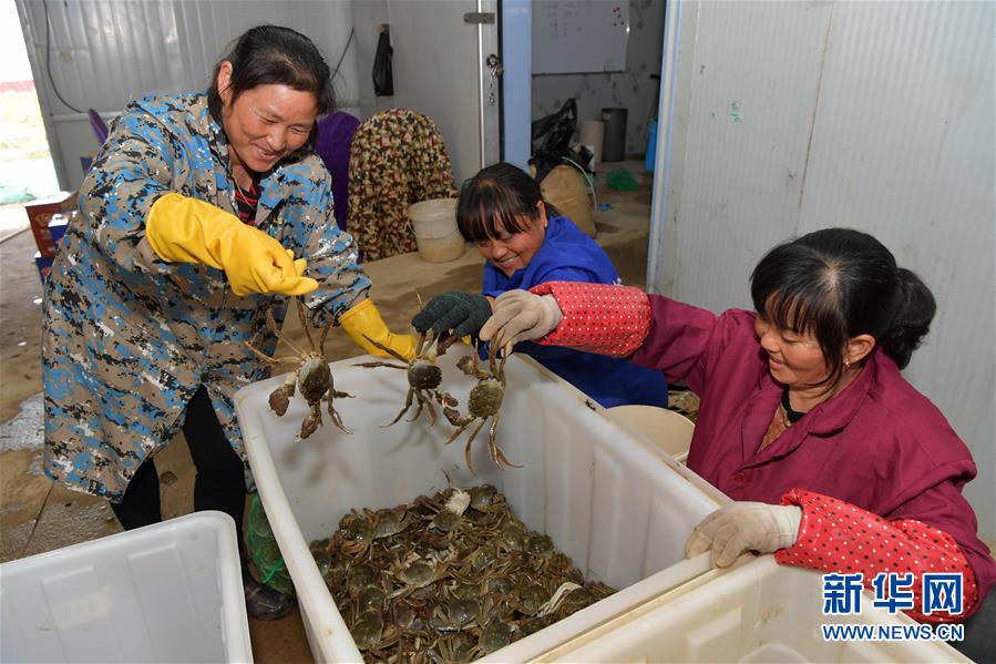 江西省南昌市新建區(qū)象山鎮(zhèn)河林村的農(nóng)戶正在清洗剛捕撈的大閘蟹,準備裝箱外銷(10月29日攝)。 新華社記者 彭昭之 攝