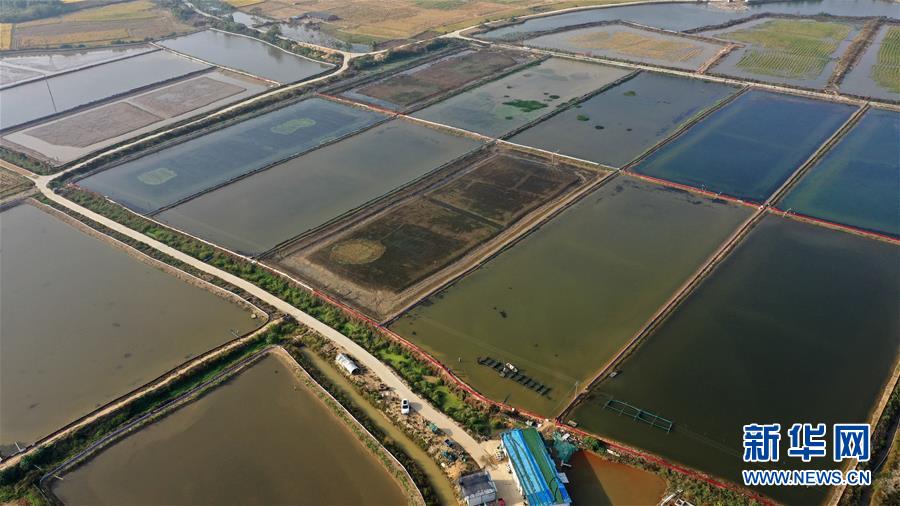江西省南昌市新建區(qū)象山鎮(zhèn)河林村的大閘蟹養(yǎng)殖基地(10月29日無人機拍攝)。 新華社記者 彭昭之 攝