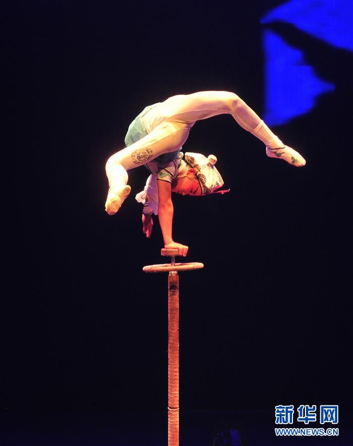 11月3日,河北省雜技團演藝有限公司演員在表演《“生丑炫技”——倒立》。 新華社記者 牟宇 攝