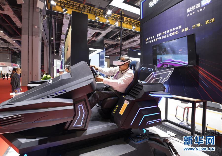 11月5日,一名參觀者在第二屆進博會科技生活展區(qū)體驗虛擬現(xiàn)實賽車。新華社記者金立旺攝