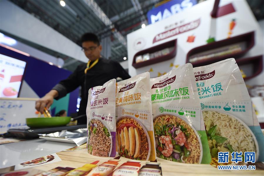這是在第二屆進(jìn)博會(huì)瑪氏公司展臺(tái)拍攝的“我的食刻”方便米飯產(chǎn)品(11月7日攝)。新華社記者尹炣攝