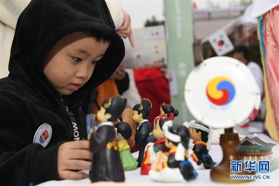 11月17日,一名小觀眾在國際文化節(jié)韓國文化展示區(qū)參觀。新華社記者 張端 攝