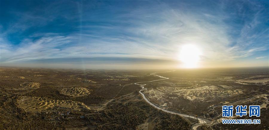 這是在塔克拉瑪干沙漠腹地拍攝的克里雅河(11月18日無(wú)人機(jī)全景拍攝)。