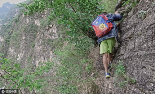 實(shí)拍懸崖村的“雙十一” 背著快遞包裹上天梯