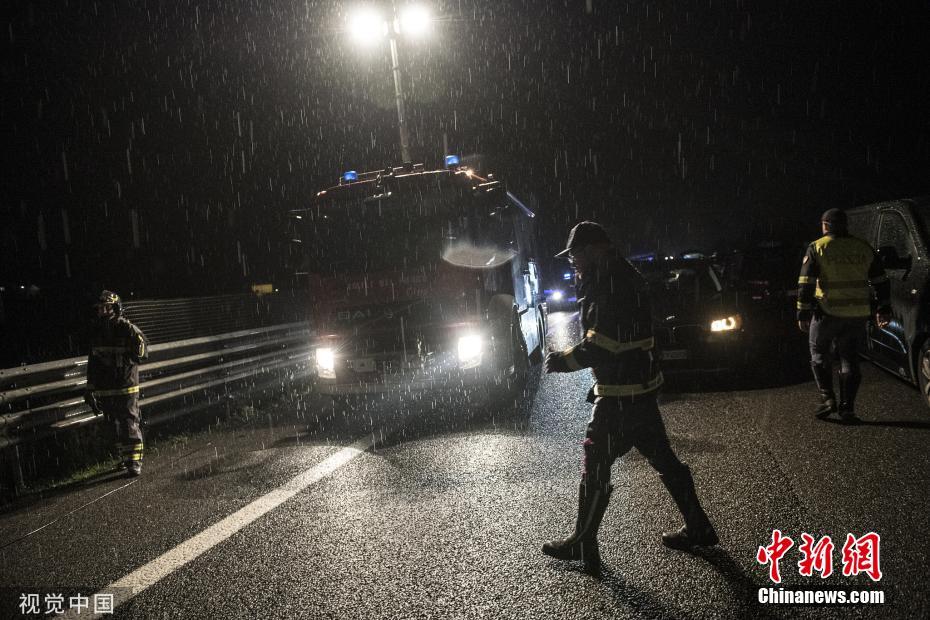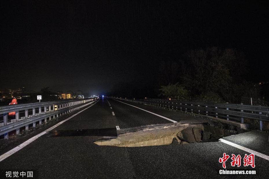 暴雨過(guò)后 意大利高速公路出現(xiàn)“大坑”