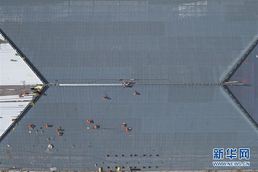 工人在宣化北站施工(5月30日無人機拍攝)。新華社記者邢廣利攝