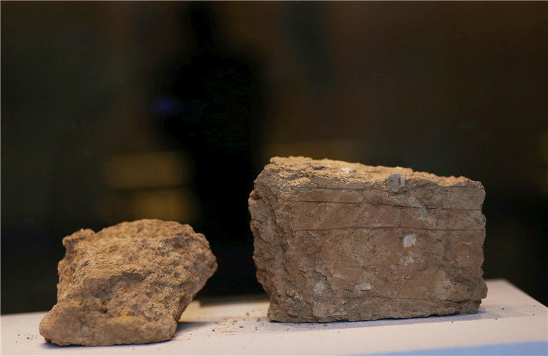 2019年10月19日,河南洛陽,二里頭夏都遺址博物館。當年建筑使用的夯土。