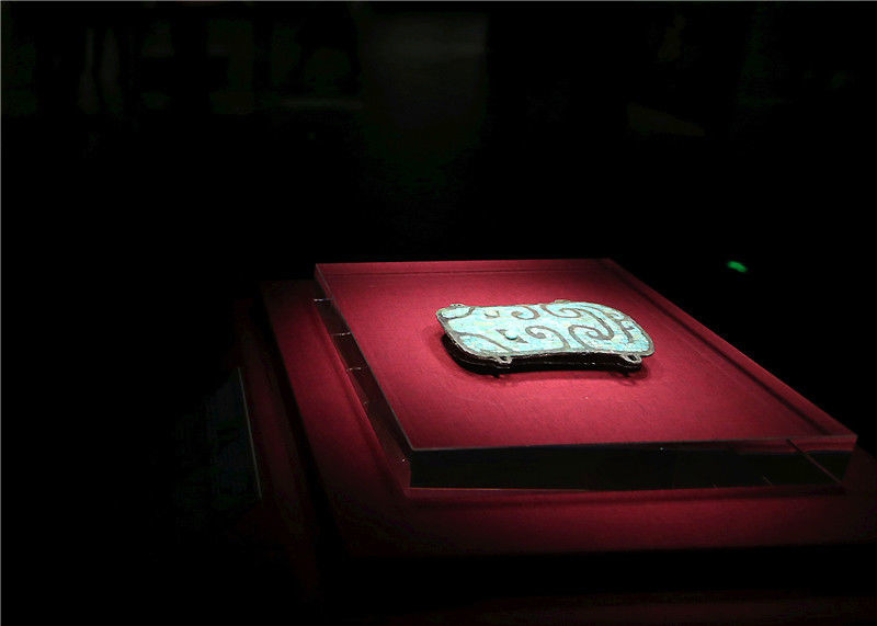 2019年10月19日,河南洛陽,二里頭夏都遺址博物館。二里頭夏都遺址博物館鎮(zhèn)館之寶“鑲嵌綠松石獸面紋銅牌飾”。