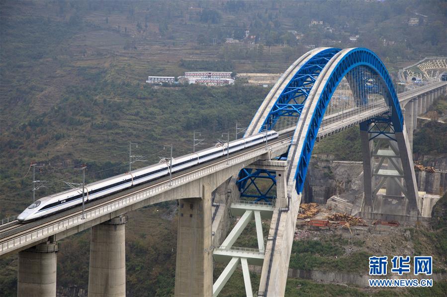 12月2日,一輛試驗(yàn)列車(chē)駛過(guò)成貴高鐵鴨池河特大橋。當(dāng)日,正在進(jìn)行聯(lián)調(diào)聯(lián)試的成貴高鐵進(jìn)入全線(xiàn)拉通空載模擬運(yùn)行階段,試驗(yàn)列車(chē)將在成都到貴陽(yáng)區(qū)間內(nèi)全線(xiàn)路運(yùn)行。線(xiàn)路全長(zhǎng)650公里的成貴高鐵是我國(guó)“八縱八橫”高速鐵路網(wǎng)的重要組成部分,設(shè)計(jì)時(shí)速為250公里。新華社記者劉續(xù)攝