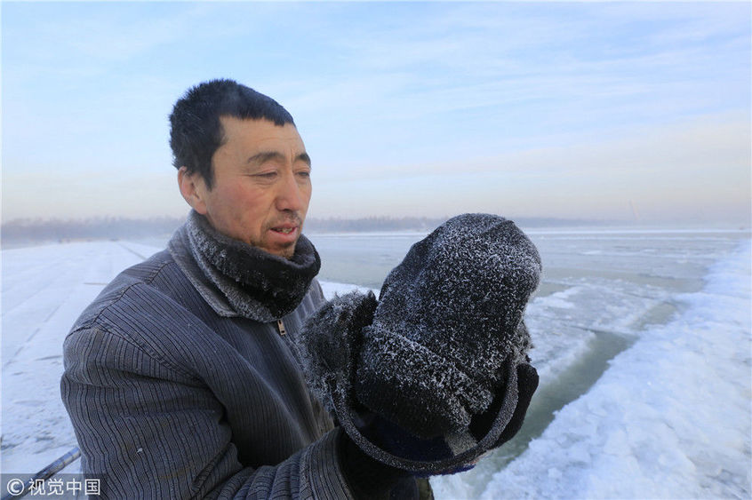 實(shí)拍松花江上的纖夫采冰者工作20天收入近萬(wàn)元