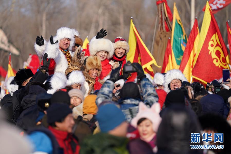 12月7日,人們?cè)诓杀?jié)現(xiàn)場(chǎng)合影留念。當(dāng)日,哈爾濱采冰節(jié)在冰封雪覆的松花江哈爾濱段江面上開(kāi)幕,精彩的采冰儀式和表演吸引了眾多冰城市民和游客前來(lái)欣賞、互動(dòng)。新華社記者王建威攝