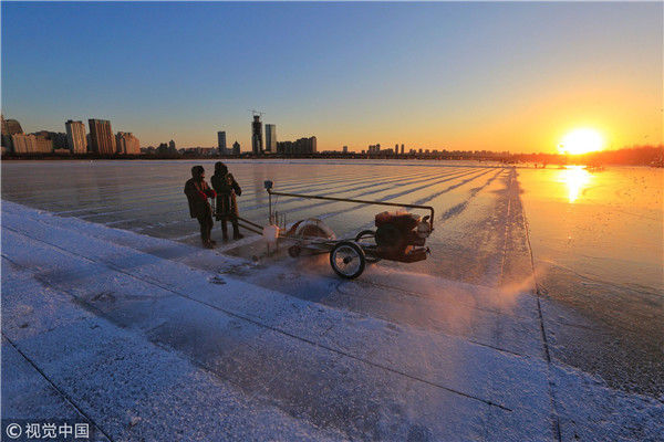 2018年12月08日,黑龍江省哈爾濱市,松花江采冰,今日正式出冰。本次采冰,是為第二十屆哈爾濱冰雪大世界的建造而進(jìn)行。視覺(jué)中國(guó)