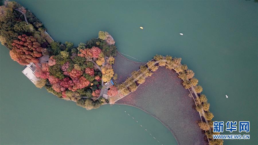 12月10日無人機拍攝的湖南烈士公園年嘉湖。新華社記者陳澤國攝