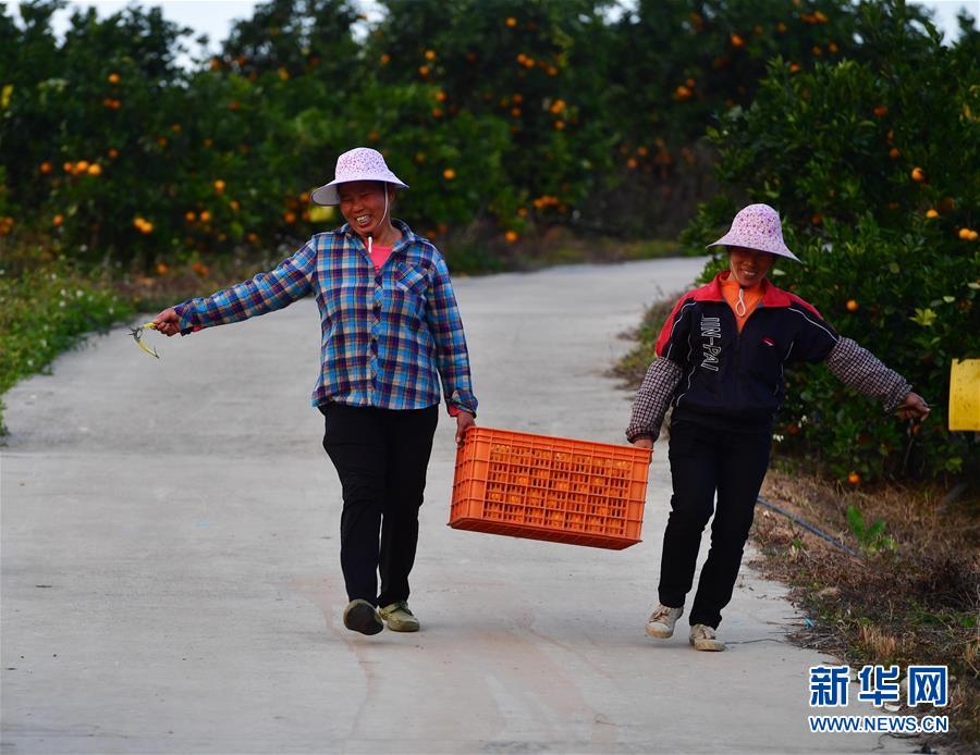 12月12日,廣西柳州市鹿寨縣鹿寨鎮(zhèn)石路村村民在搬運剛剛采收的蜜橙。新華社記者 黃孝邦 攝