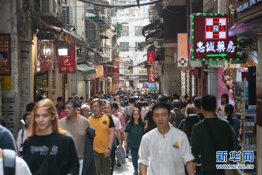 12月17日,澳門(mén)大三巴斜巷游人如織。新華社記者杜宇攝