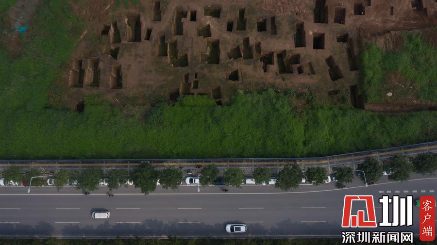 西安宜家工地挖出古墓空中俯瞰數(shù)百墓坑密密麻麻