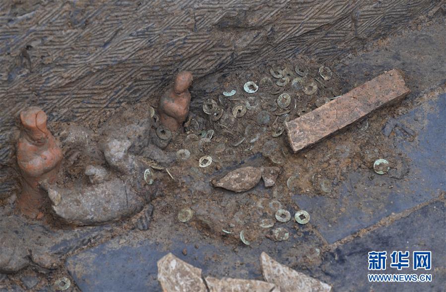 目前,工作人員已經(jīng)發(fā)掘古墓葬70余座,有少量文物出土,其中包括瓷罐、陶罐、銅簪和銅錢(qián)等。這批墓葬均為豎穴土坑墓,隨葬器物不多。