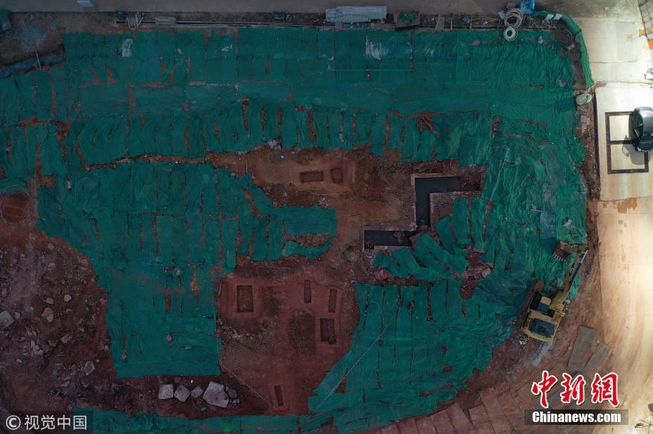 2019年10月12日,陜西西安,西安工地又一次挖出古墓。近日正在建設(shè)中的西安宜家薈聚購(gòu)中心工地挖出數(shù)百古墓,密密麻麻。