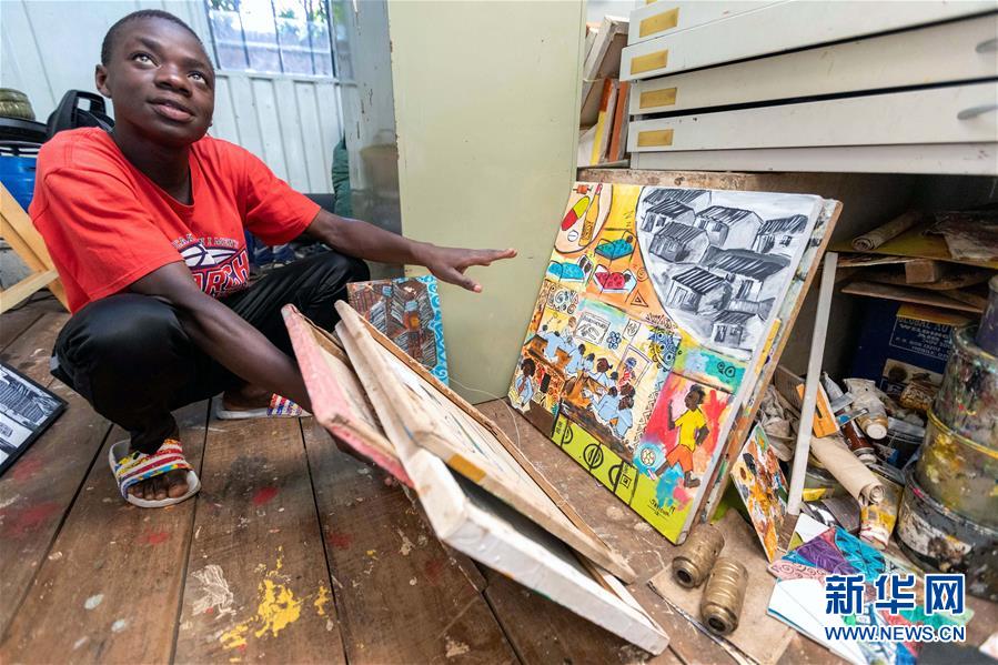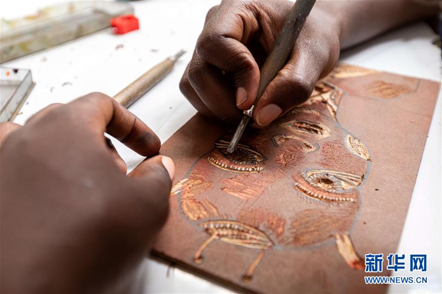 12月20日,在肯尼亞內(nèi)羅畢庫奧納藝術(shù)中心,一名藝術(shù)家在工作室內(nèi)創(chuàng)作作品。  新華社記者 王騰 攝