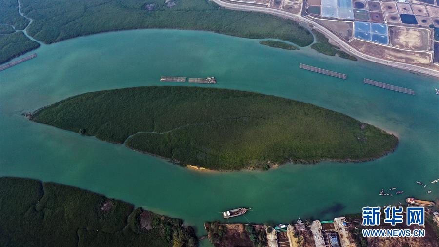 12月21日無人機(jī)拍攝的廣西合浦縣黨江鎮(zhèn)更螺圍出??谝痪?。冬日,廣西廉州灣海域風(fēng)光別致。新華社記者張愛林?jǐn)z