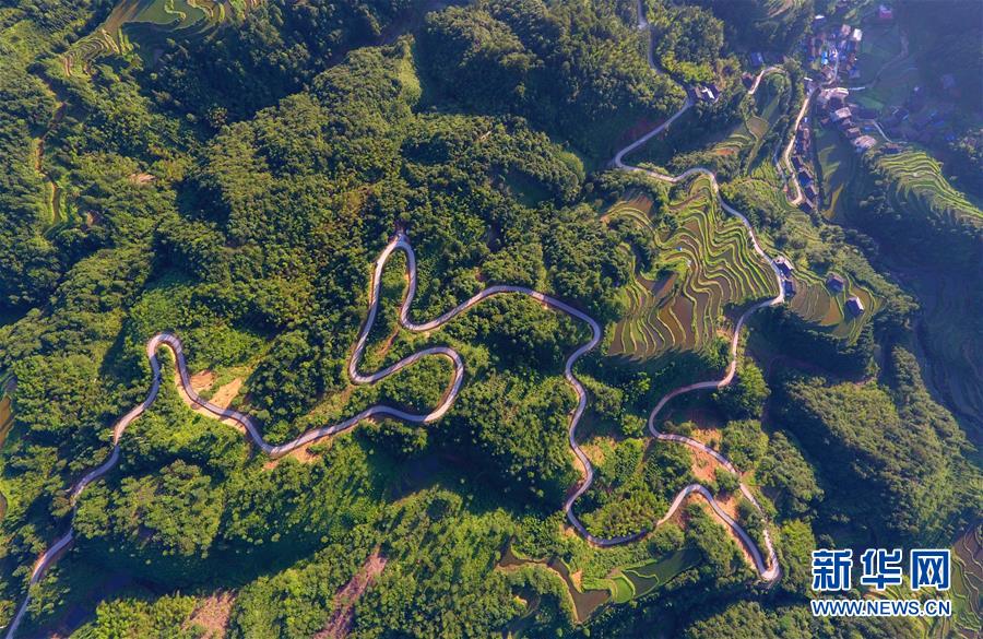 這是融水苗族自治縣桿洞鄉(xiāng)歸江村的村屯公路(6月19日無人機拍攝)。新華社記者黃孝邦攝
