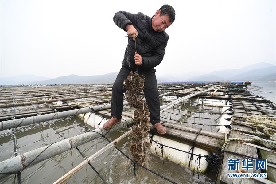 寧德福安市溪邳村村民在查看海上養(yǎng)殖的牡蠣(3月7日攝)。新華社記者姜克紅攝
