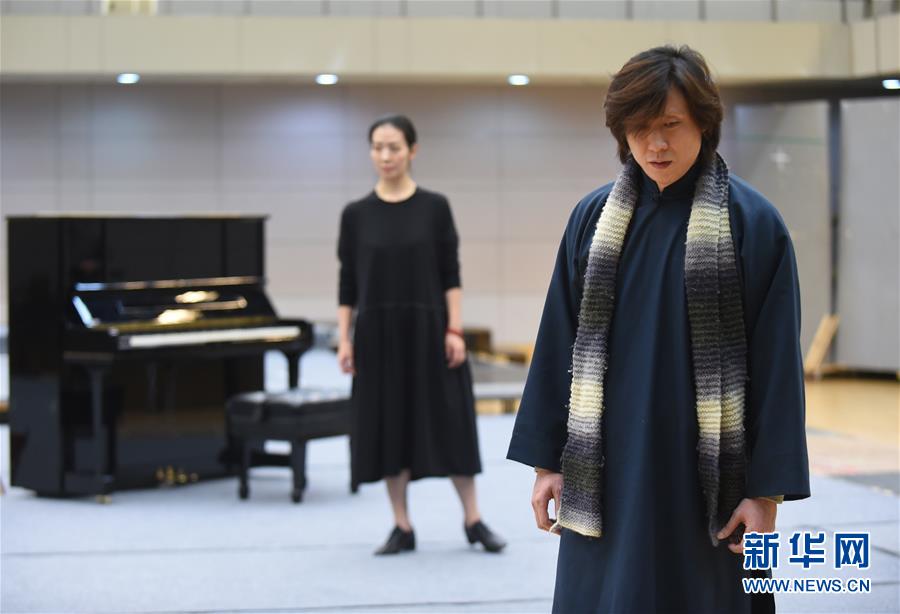 12月26日,在話劇《二月》中飾演蕭澗秋的演員王瑋(右)在排練。 新華社記者 羅曉光 攝