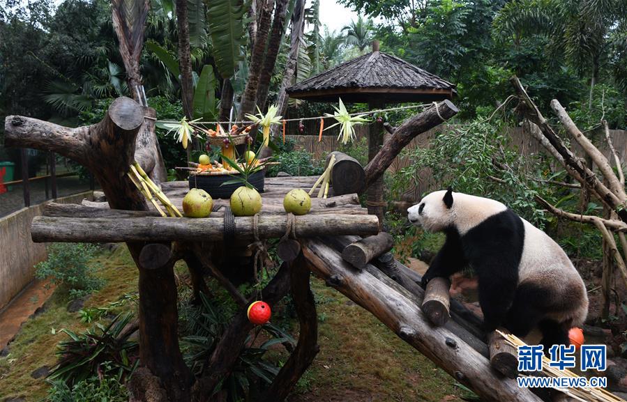 12月31日,大熊貓“舜舜”來到布置好的“飯桌”。 新華社記者 楊冠宇 攝