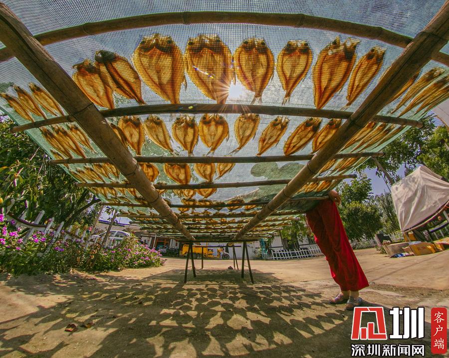 岸上,家家戶戶都在忙著晾曬剛捕撈上來(lái)的毛刀魚(yú)、小白魚(yú)和武昌魚(yú)。