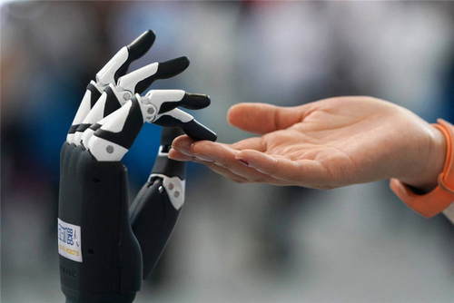 2019年6月13日,全國大眾創(chuàng)業(yè)萬眾創(chuàng)新活動周——北京會場主題展在中關村國家自主創(chuàng)新示范區(qū)展示中心開幕。這是一位參展商在演示展出的機器人產(chǎn)品。新華社記者鞠煥宗攝