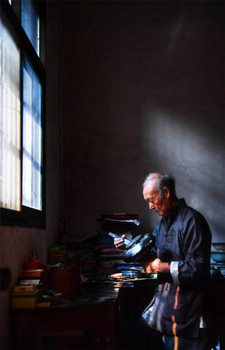 2019年10月12日,在江西省鄱陽縣鄱陽鎮(zhèn),76歲的“鄱陽脫胎漆器髹飾技藝”國家級非物質(zhì)文化遺產(chǎn)代表性傳承人丁國坤在家中為一件未成形的脫胎漆器“上漆”。新華社記者胡晨歡攝