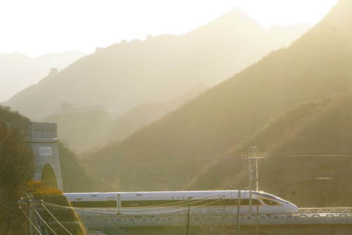 2019年12月30日,G2418次列車駛過居庸關(guān)長城。當日,北京至張家口高速鐵路開通運營,崇禮鐵路同步通車。新華社記者邢廣利攝