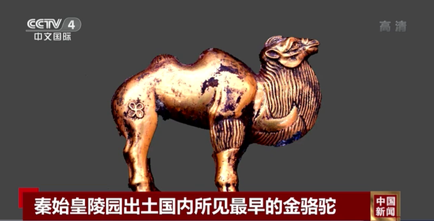 出土的金駱駝是目前國內(nèi)所見最早的單體金駱駝。這些出土器物不僅為漢代絲綢之路開通以前,中西文化交流提供了重要依據(jù),也為秦代政治、經(jīng)濟、軍事、科技、文化等研究提供了重要的實物材料。