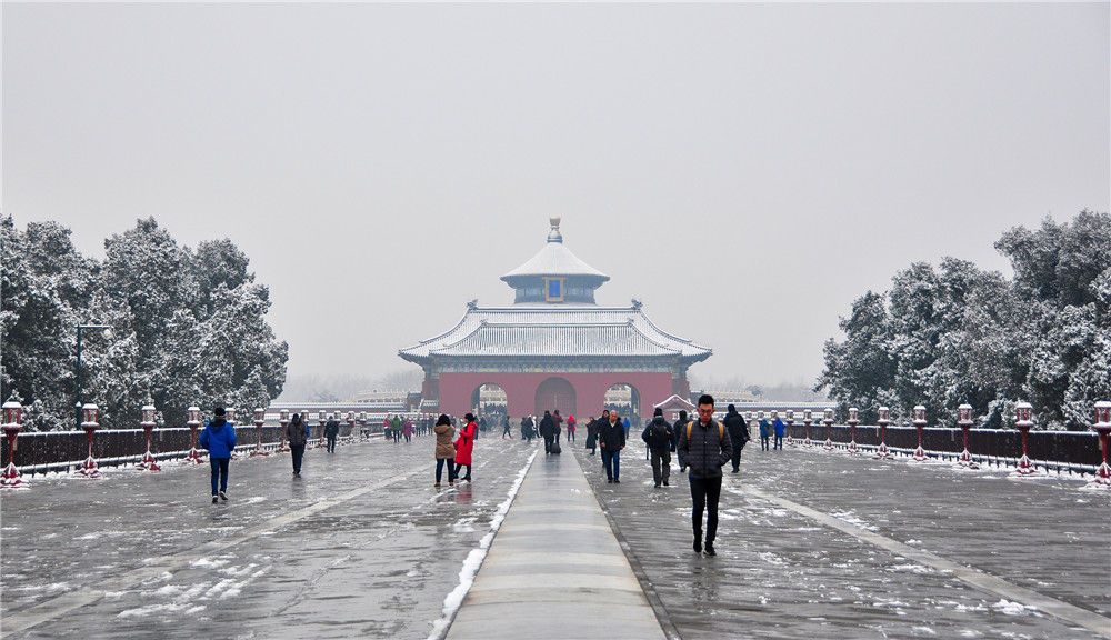 12月16日,人們在天壇公園觀賞雪景。當日,北京迎來降雪天氣。新華社記者鞠煥宗攝