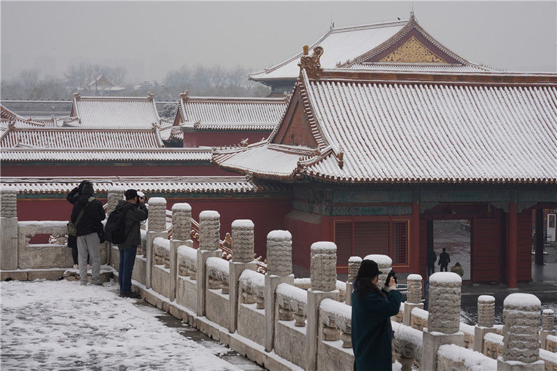 2019年11月30日,北京,初雪過后,故宮美景如畫,吸引大批游客前來“打卡”。